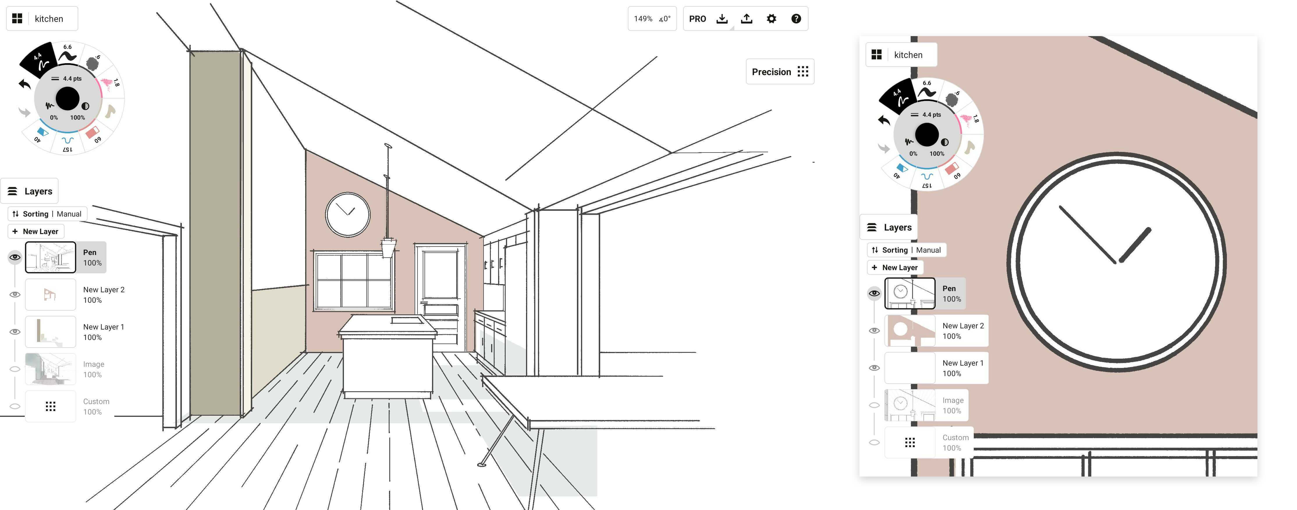 With a two-finger tap on the canvas, you can undo your strokes in workflow. It’s popular to the point we’ve heard our designers wail about not having two-finger undo on a normal piece of paper.