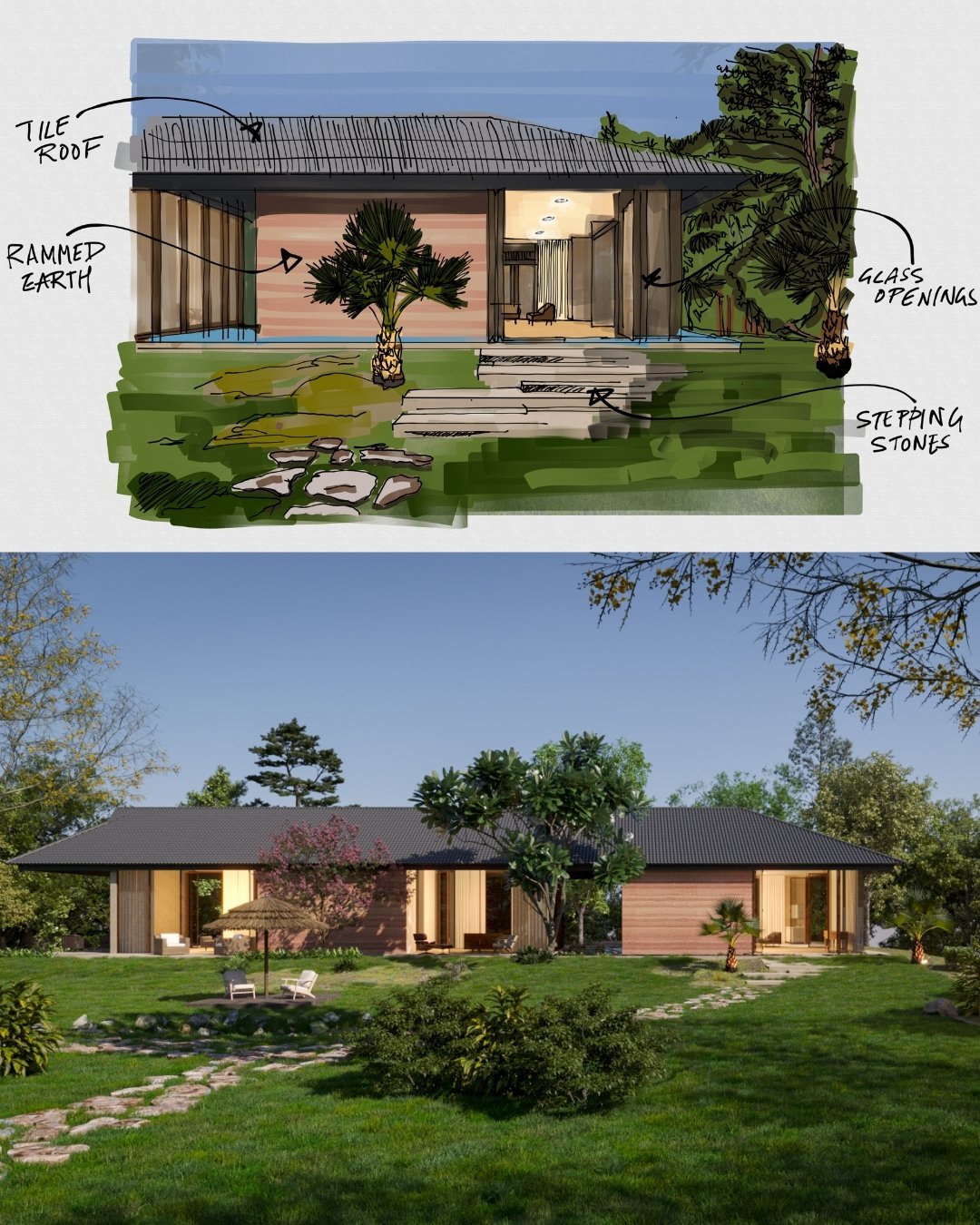 This stunning sketch of a mansion restoration project by architect Frédéric Louis is the first step in bringing the vision to life.