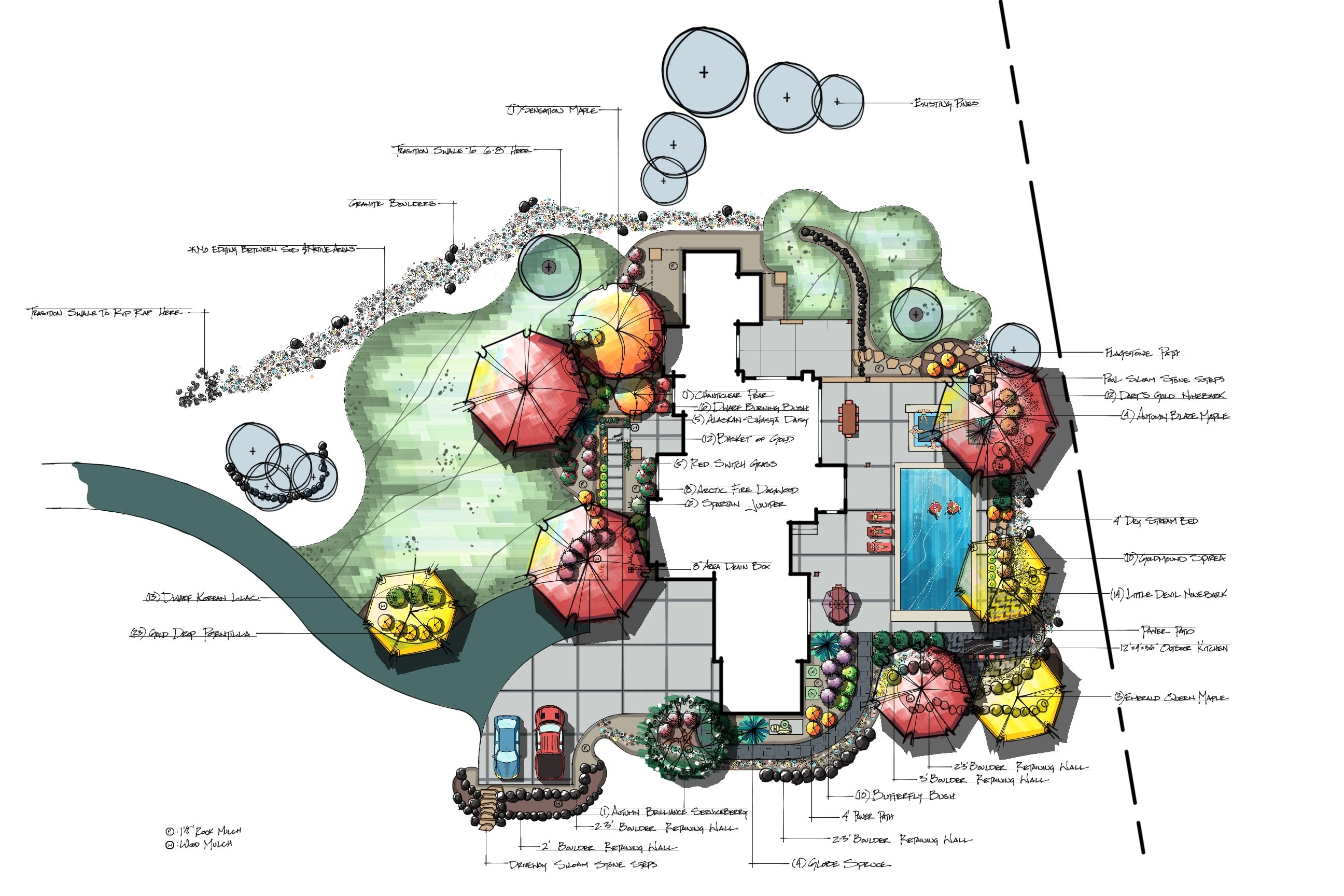 Landscape designer, Adam, visualizes a space and its unlimited potential. His designs incorporate lush planted beds, winding retaining walls and varying hardscape material.