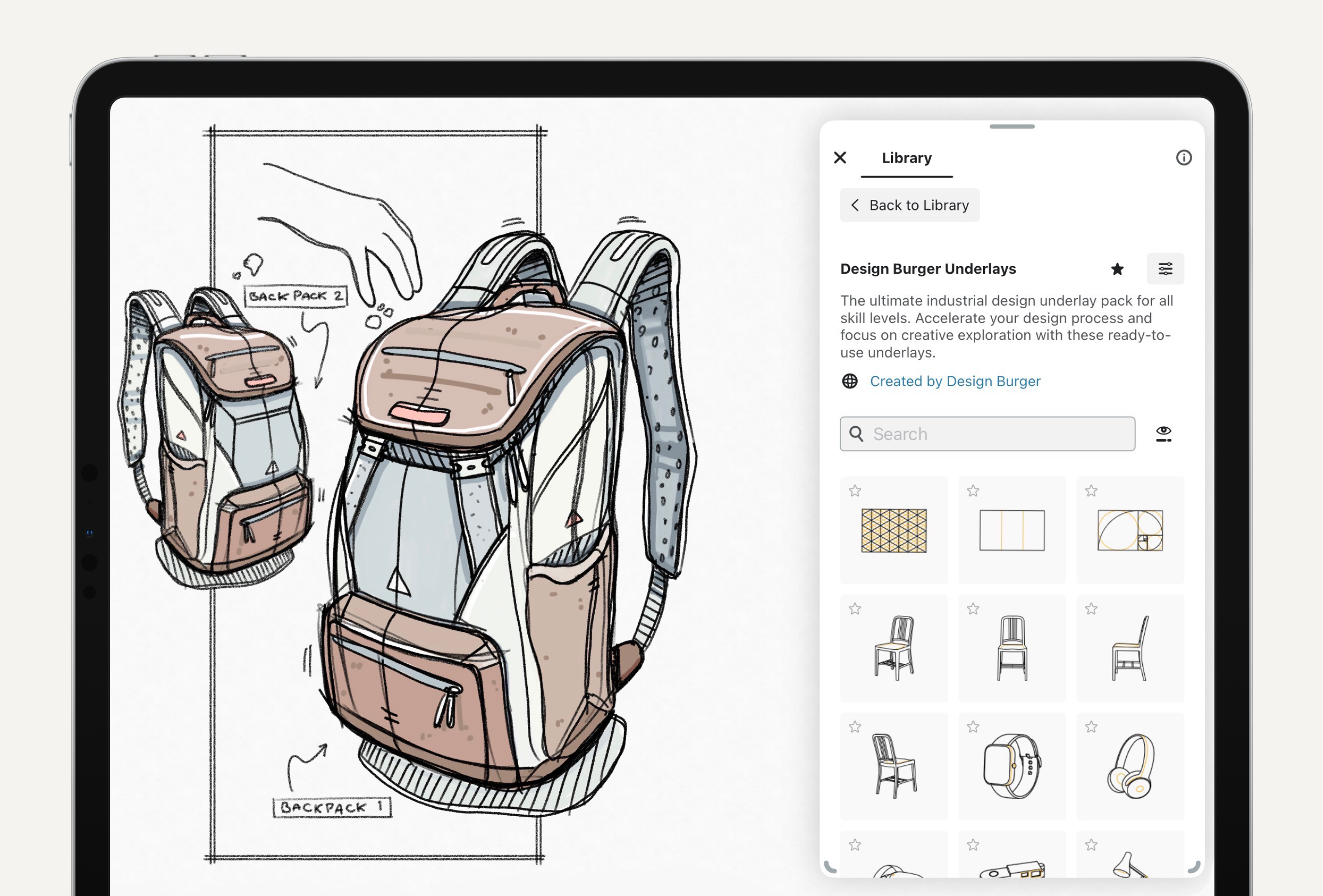 Explore the new Underlays Object Pack, a powerful toolkit that instantly enhances your industrial design process. Based on their community's feedback, the Design Burger team developed these underlays to help designers quickly start the process, from initial sketches to final product ideas.