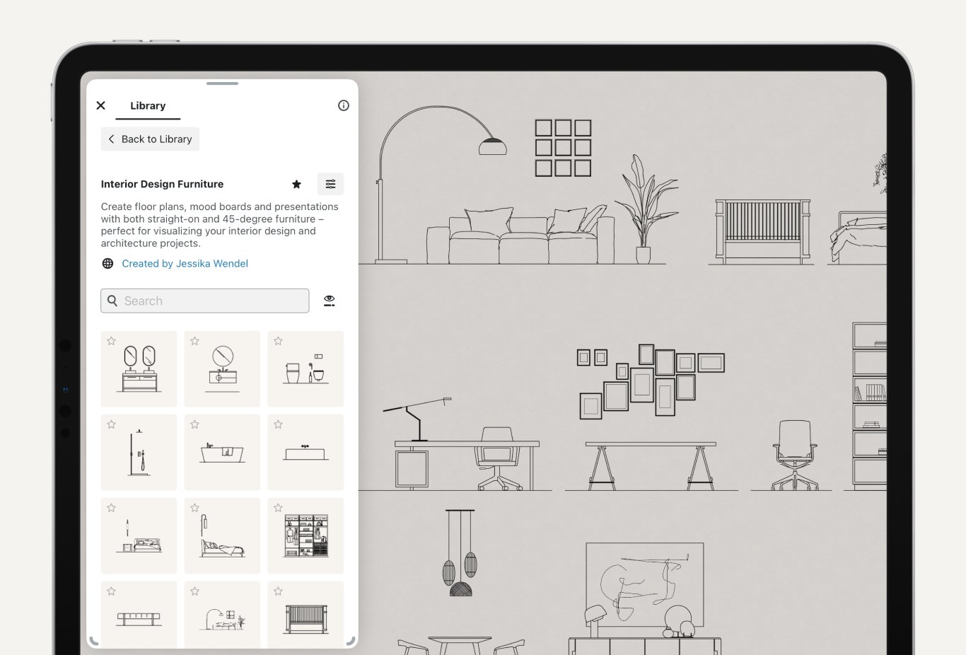 The Interior Design Furniture Object pack is available with a monthly/yearly subscription, or as a one-time purchase in Concepts. Find it by tapping Objects > Interior Design Furniture and start creating!