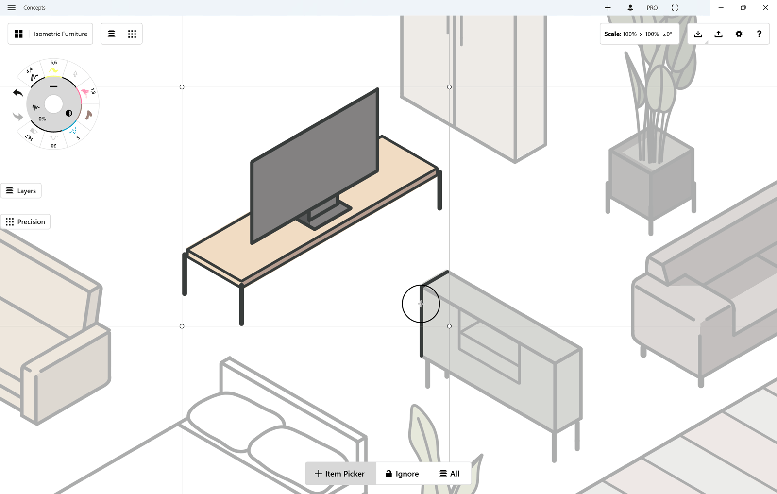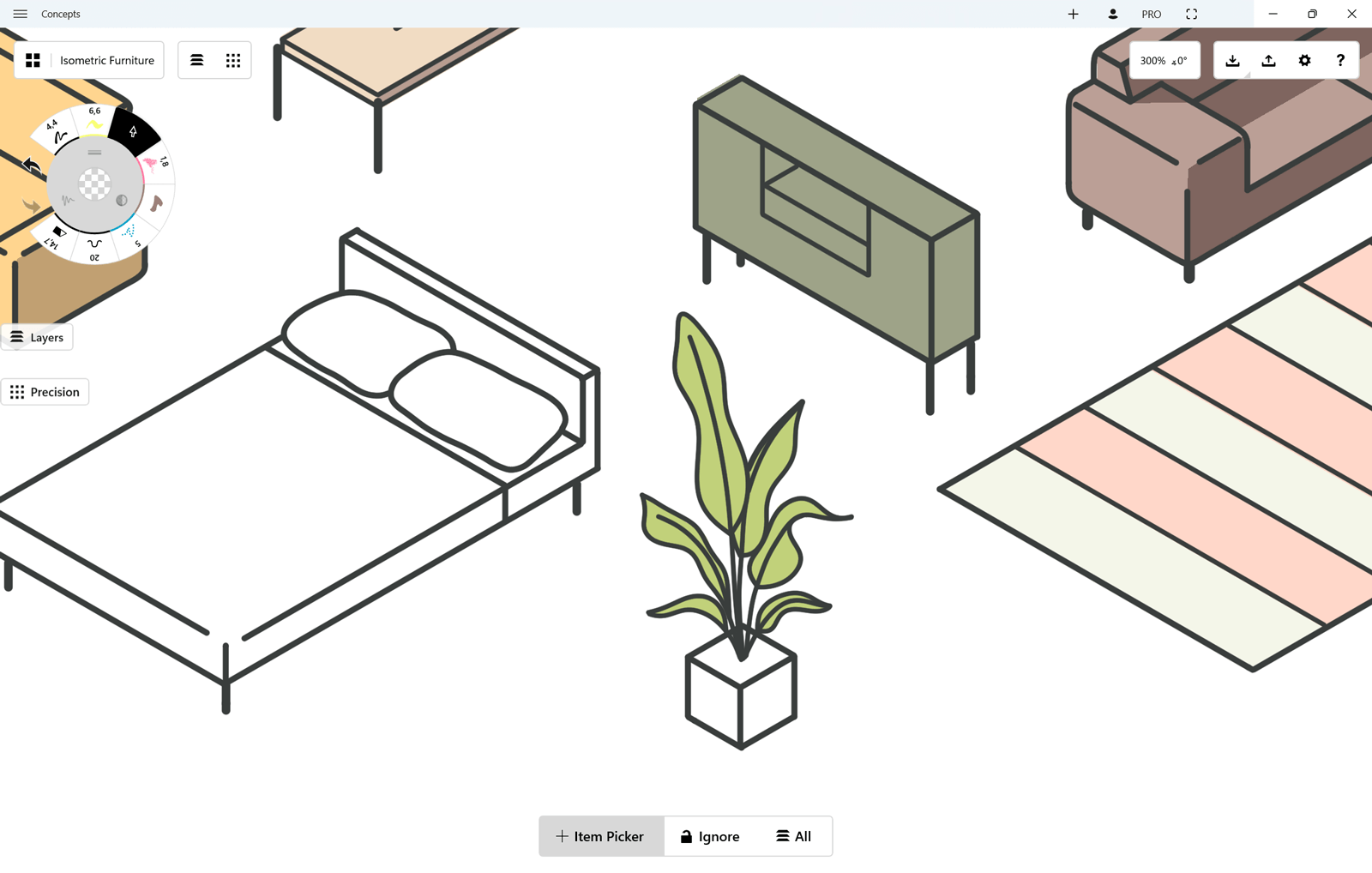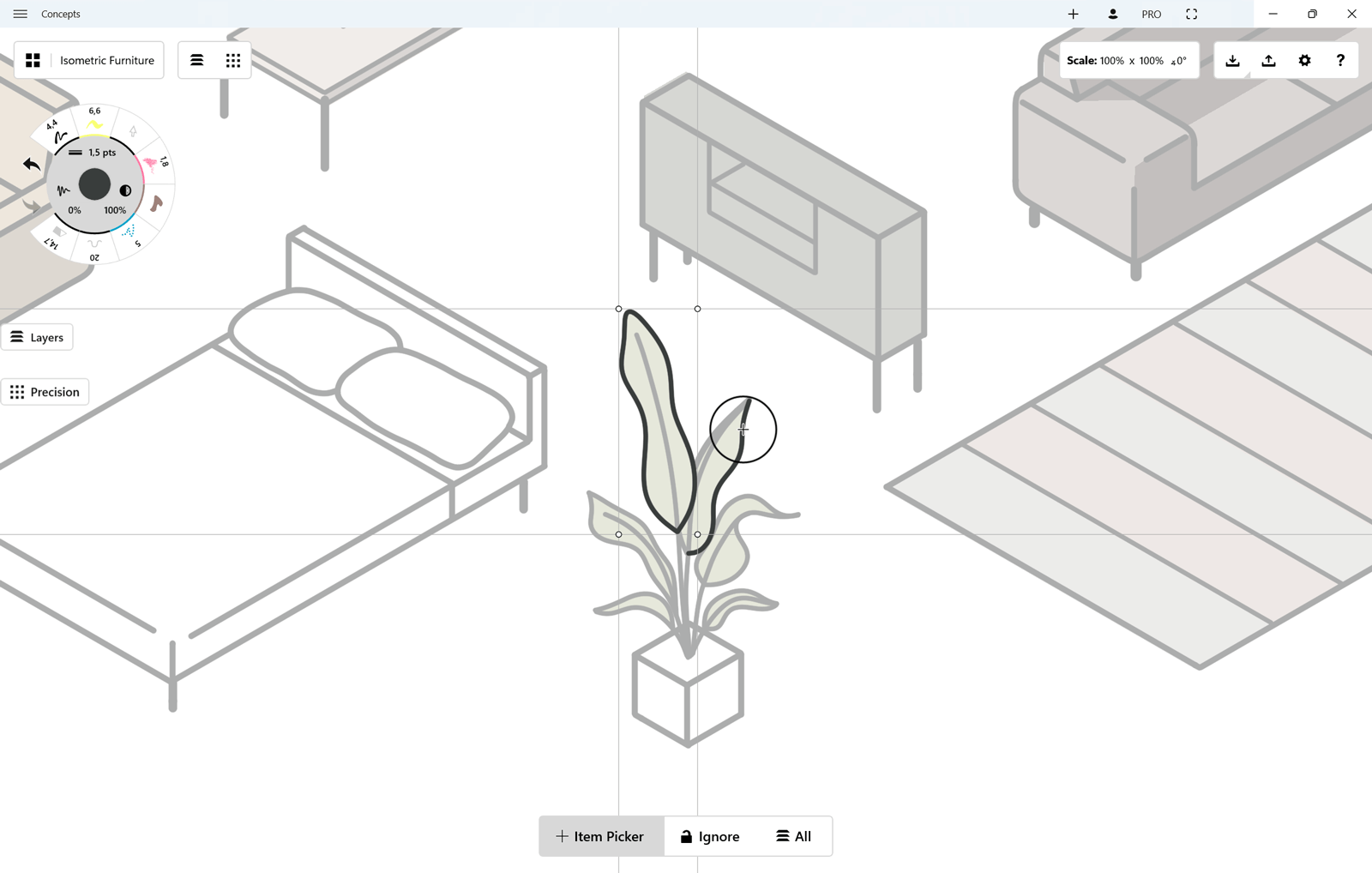 Concepts is a vector-based app, which gives you the powerful freedom to pick up and move, tweak or change any stroke at any time, even after it’s drawn. It allows you to make changes to your designs with minimal effort - instead of redrawing an entire project, you can just select what needs to be adjusted and change it. Perfect for design iterations, reorganizing mind-maps, or preparing materials for clients after feedback, Selection frees you to accomplish more.