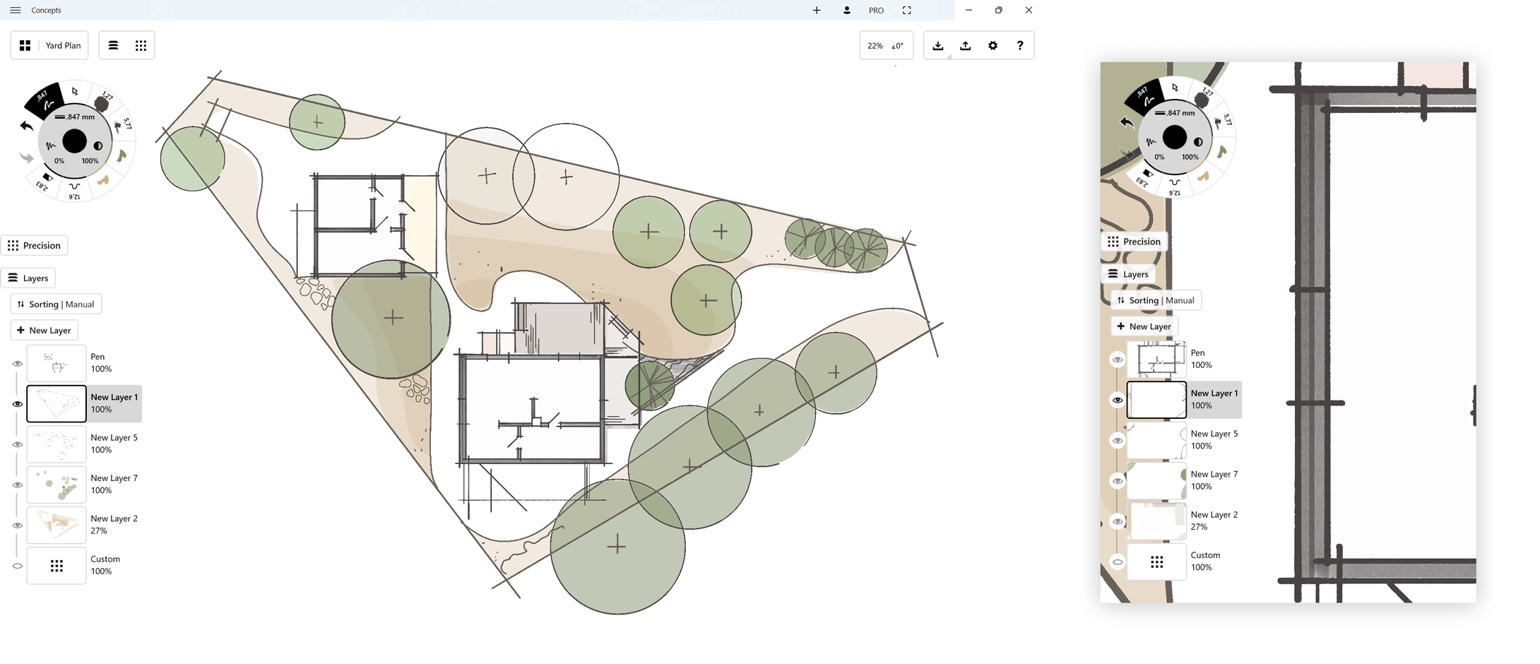 Concepts is equipped with an infinite canvas, which is our way of saying you can extend your paper in any direction you need it, as far as you need it to go. Pan around using two fingers normally, or one finger while using the Selection tool. If you’re using a Surface Pen, you can set your Finger Action to pan around as well, which makes navigating while drawing more convenient.