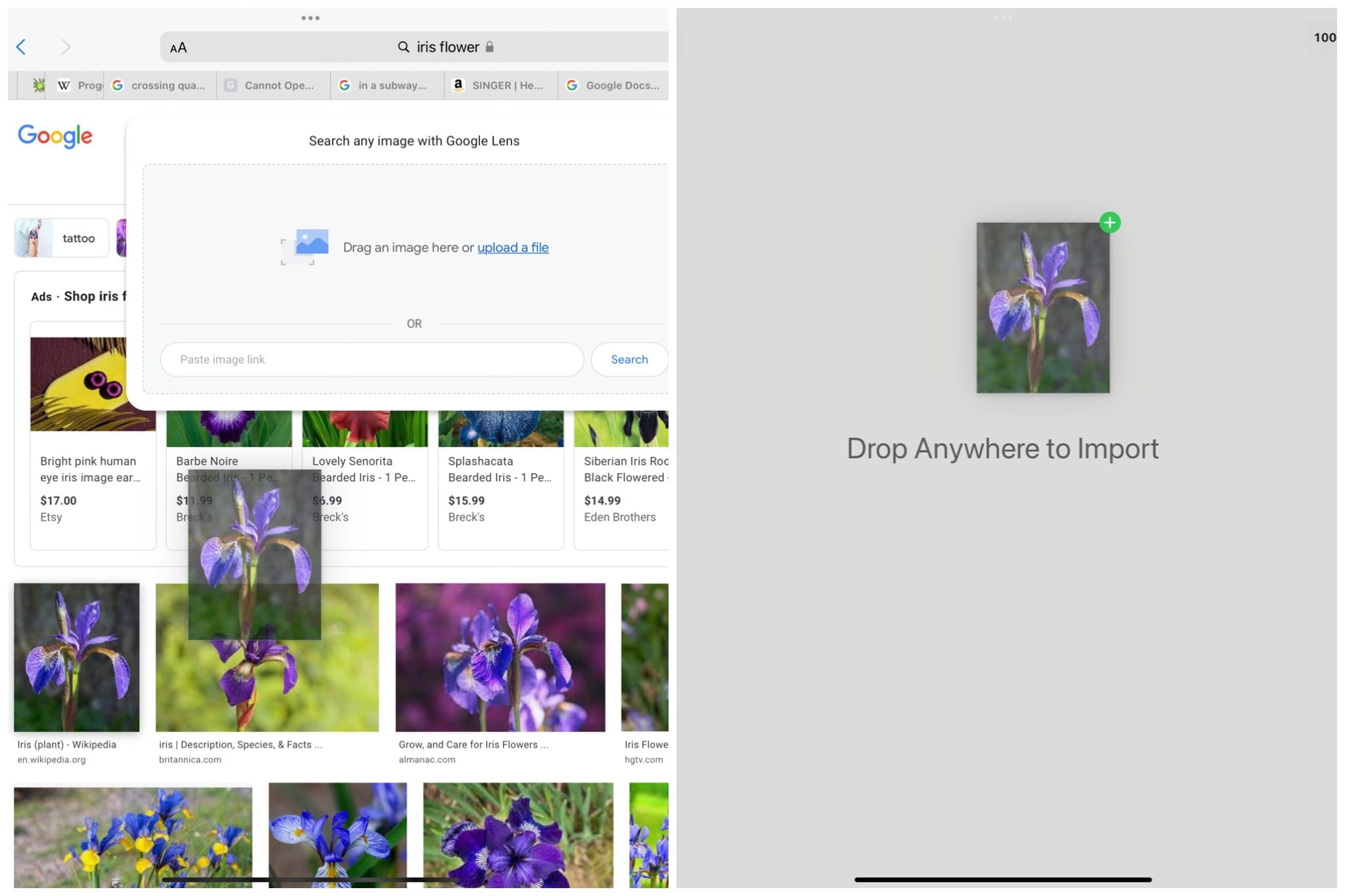 您也可以通过Drag & Drop从任意支持的软件导入。比如,您通过谷歌图片搜索找到一幅想作为参考使用的图片,可以在网页浏览器上长按图片,然后直接拖到画布上。您可以通过支持的软件对颜色进行相同操作,然后把它们拖到您的色盘内。