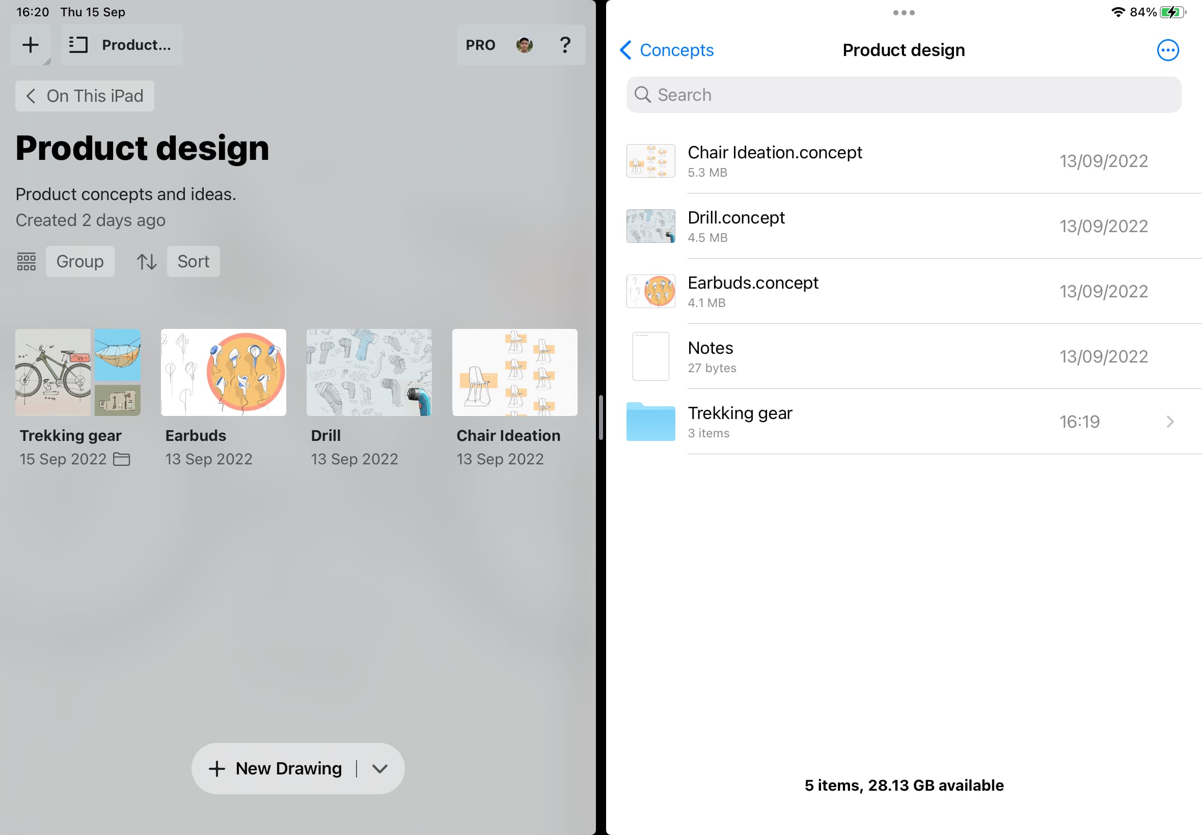 您所有的概念画板画作和文件夹都可以通过文件App访问。在文件内,导航到“我的iPad”(或“我的iPhone”) →“概念画板”找到您所有的画作。点击任意文件,将会在概念画板内打开它。相同的,编辑(重命名、复制、删除)任意文件,变动也会体现在画廊中。在概念画板画廊内编辑文件的同时,文件app内概念画板文件夹也会相应更新。